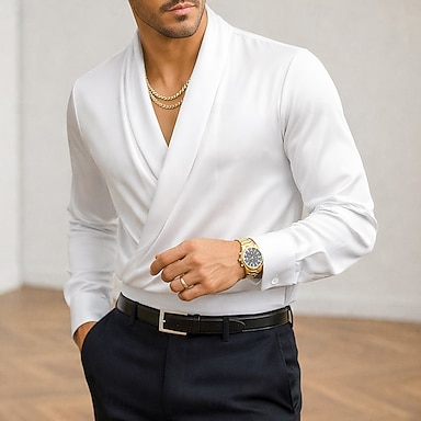 Homens Camisa Social Como seda Blusa de cetim Saia Camisa casual Camisa de formatura Tecido Casamento Formal Preto Branco Manga Longa Xaile Primavera Todas as Estações Roupa Enrole