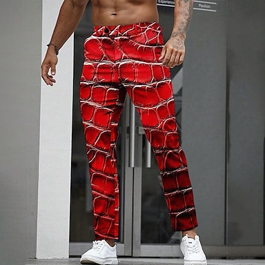 Homens Geométrica Estampas de Couro de Crocodilo Social Calças Calças de Terno Cintura Média Casual Ao ar livre Feriado Calças retas com bolsos Primavera Outono Impressão 3D Vermelho Caqui Azul Escuro