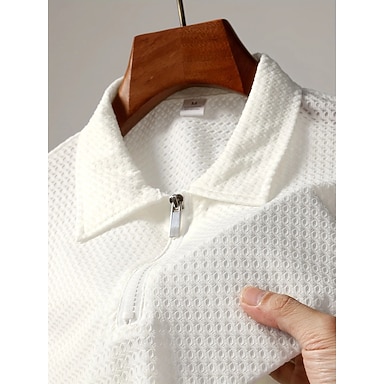 Homens Polo com zíper polo empresarial Casual O negócio Com Zíper Lapela Manga Curta Moda Básico Tecido Zip Up Quarter Zip Verão Normal Preto Branco Azul Marinho cáqui Cinzento Polo com zíper