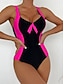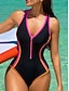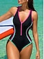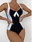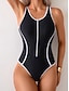 Mulheres Roupa de Banho Uma pedaço roupa de banho Maiô fio dental Patchwork Frente Única Férias Roupa de Praia Bloco de cor Mergulho Sem Manga Fatos de banho