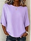 Mulheres Camisa Popover Camisa casual Blusa Côr Sólida Elegante Férias à moda Manga 3/4 Decote V Tops regulares Trabalho Praia Feriado Azul Preto Branco Vermelho Roxo Verão Primavera Outono Inverno