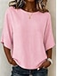 Mulheres Blusa Ilhó Côr Sólida à moda Básico Casual Manga 3/4 Decote V Tops longos Casual Diário Azul Branco Rosa Rosa empoeirada Roxo Verão Primavera Outono