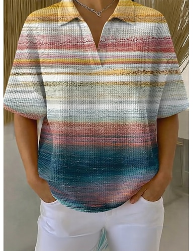 Mulheres Camisa Waffle Camisa casual Tops de verão Gráfico Geométrica Vintage à moda Sem Manga Colarinho de Camisa Tops longos Diário Ao ar livre Escritório Azul empoeirado Arco-íris Verão Primavera
