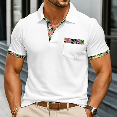 Homens Camiseta Polo Polos de botões Casual Esportes Lapela Manga Curta Moda Básico Bloco de cor Patchwork Verão Normal Preto Branco Vermelho Azul Marinho Verde Escuro Camiseta Polo