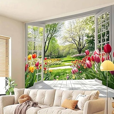 Arte de Parede Tapeçaria Suspensa Flores de Paisagem Grande Tapeçaria Mural Decoração Fotográfica Fundo Cobertor Cortina Decoração de Casa Quarto Sala de Estar