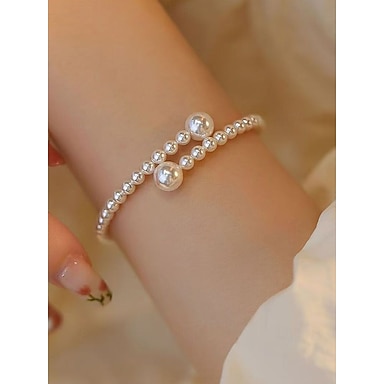 Pulseira feminina de pérolas sintéticas, design elegante em dois tons, perfeita para casamentos, Dia dos Namorados e uso diário.