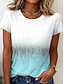 Mulheres Camiseta Imprimir Gráfico Plantas Cores Gradiente Vintage à moda Clássico Manga Curta Decote V Tops regulares Diário Azul Branco e Preto Branco / azul Verão Primavera