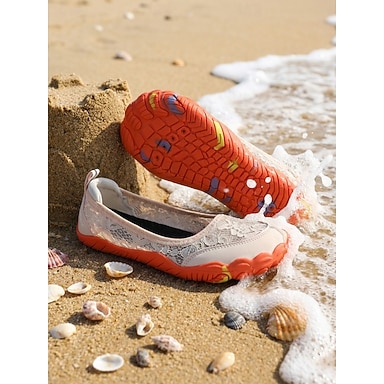 Sapatos aquáticos femininos rosa com cadarço, meias aquáticas antiderrapantes de secagem rápida, calçado leve e respirável para praia, natação, mergulho livre, mergulho autônomo e surfe. & caminhada