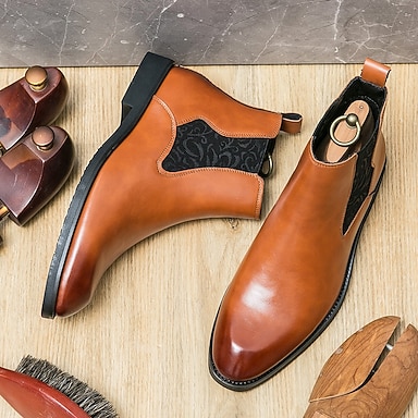Botas Chelsea masculinas de couro sintético marrom – elegantes e confortáveis, perfeitas para ocasiões formais e casuais elegantes