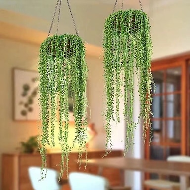 Conjunto de 6 plantas artificiais pendentes em formato de colar de pérolas, suculentas artificiais em forma de trepadeira, folhagem verde para decoração de parede, ideal para casa e casamentos.