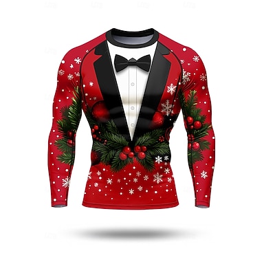 Natal Homens Camisetas Compressão Camiseta de Corrida Manga Longa Camiseta Animal Modelado Secagem Rápida Compressão Power Flex Pavio Humido Treino de Ginástica Treinamento Ativo Exercício Roupa de