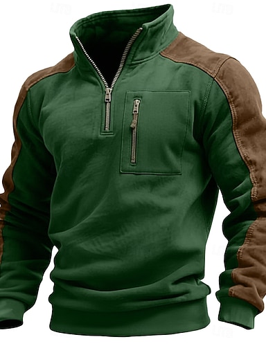 Homens Camisolas e Capuz Manga Longa Colarinho Chinês Meio Zíper Outono Inverno Primavera & Outono Bloco de cor Vintage Diário Casual Bolsos Bloco de cor Ao ar livre Casual Roupa Esportiva Preto
