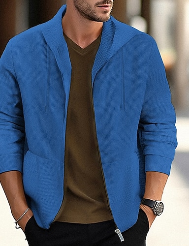 Homens Moletom Full Zip Hoodie Moletom de lã Preto Branco Vinho Azul Marinha Azul Real Com Capuz Tecido Zíper Bolsos Desportos e Ar livre Diário Feriado Poliéster Roupa de rua Legal Casual Primavera