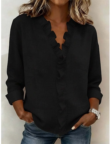 Camiseta Feminina de Manga Longa Cor Sólida Elegante Casual Manga Longa Gola Redonda Tops Regulares Impressão Diária Botões Preto Amarelo Vermelho Azul Primavera Pré Outono
