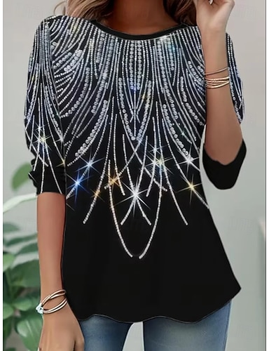 Camiseta Feminina Manga Longa Gola Careca Tunic Floral Gráfica Gradiente Elegante Vintage Estilosa Tops Regulares Estampa Diária Branco Amarelo Vermelho Azul Verde Escuro Outono Pré-outono