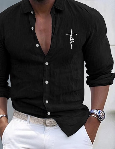 Homens Camisa Social Camisa de linho camisa de verão Camisa casual camisa de botão Tecido Férias Curise Preto Branco Rosa Azul Manga Longa Faixa Verão Primavera & Outono Roupa
