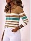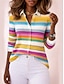Camiseta Feminina de Manga Longa Gráfica Bloco de Cor Listrada Elegante Vintage Estilosa de Manga Longa Gola em V Tops Regulares Impressão Diária de Fim de Semana Zíper Preta Vermelha Azul Royal
