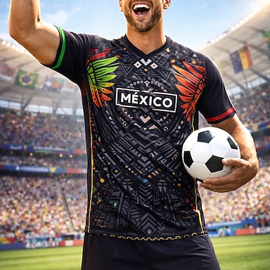 Camiseta masculina de futebol tiki-taka, com estampa da Copa Internacional de Futebol de 2026, ideal para o torneio global de futebol, com foco em táticas de passe e posse de bola. Manga curta.