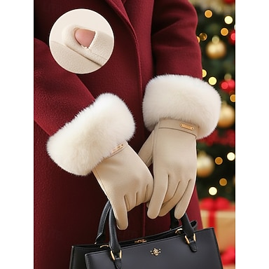 luvas femininas touchscreen, material de pele sintética de poliéster, luvas de inverno aconchegantes para o natal, elegantes e estilosas para presentear no feriado
