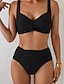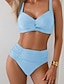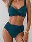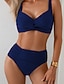 Mulheres Roupa de Banho Biquíni 2 partes Cintura Alta roupa de banho Franzido Frente Única Férias Roupa de Praia Tecido Decote V Sem Manga Fatos de banho