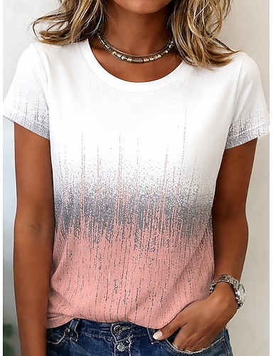 Mulheres Camiseta Imprimir Âmbar Gráfico Abstrato à moda Clássico Casual Manga Curta Gola Redonda Decote Redondo Tops regulares Casual Diário Azul Rosa Roxo Verde Verão Primavera