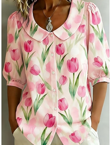 Mulheres Camisa Social camisa Boho Floral Elegante Boêmia Férias Diário Feriado Para Noite Amarelo Verde Claro Rosa Verão Primavera