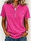 Mulheres Camisa Henley Vintage Moda à moda Manga Curta Tops regulares Casual Praia Azul Roxo Cáqui Primavera