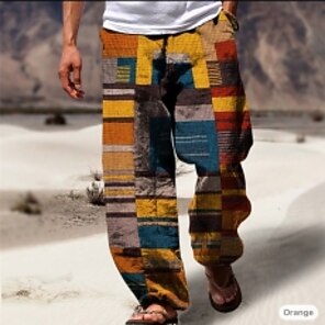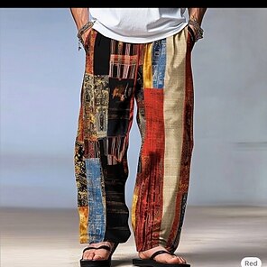 Voor heren Kleurenblok Lapwerk Broeken Medium Taille Trekkoord elastische taille Hawaii Casual Buiten Feestavondkleding Feestdagen Broek met rechte pijpen Zomer Lente Herfst 3D-afdrukken Rood Blauw