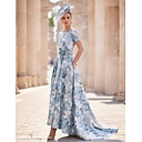A-Line Asymmetrical Ankle Length Formal Dress Flare Dress Evening Gown Short Sleeve Bateau Neck Elegant Formal Wedding Guest Chiffon Mother of the Bride Dress with Pleats Flower |