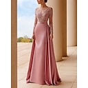 A-Line Sweep / Brush Train Formal Dress Evening Gown Overskirt Dress Long Sleeve Scoop Neck Elegant Wedding Guest Stretch Satin Mother of the Bride Dress with Lace Sash / Ribbon Ruching |