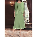 Dress Sets Mother of the Bride Dress Elegant Simple Square Neck Tea Length Polyester 3/4 Length Sleeve with Solid Color |