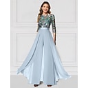 Jumpsuit Mother of the Bride Formal Wedding Guest Elegant Party Scoop Neck Ankle Length Chiffon Lace 3/4 Length Sleeve with Appliques |