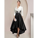 A-Line Asymmetrical Tea Length Party Dress Cocktail Dress Flare Dress 3/4 Length Sleeve Shirt Collar Elegant High Low Formal Wedding Guest Satin Lace Mother of the Bride Dress with Appliques Color |