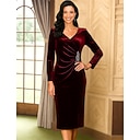Sheath / Column Tea Length Party Dress Cocktail Dress Bodycon Dress Long Sleeve V Neck Elegant Vintage Formal Velvet Mother of the Bride Dress with Crystals |