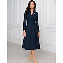A-Line Tea Length Party Dress Cocktail Dress Long Sleeve Shirt Collar Elegant Minimalist Formal Polyester Mother of the Bride Dress with Sash / Ribbon |