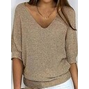 Women's Sweater Pullover Daily Stylish Casual Solid Color Ribbed V Neck Knitted 3/4 Length Sleeve Regular Tops Knit Outdoor Daily Black Light Green Summer Spring |