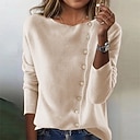 Women's Sweater Casual Soft Pure Color Cable Crew Neck Buttons Knitted Long Sleeve Regular Tops Knit Outdoor Daily Weekend Black White Fall Winter |