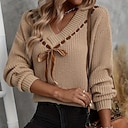 Women's Sweater Fashion Soft Solid Color Ribbed V Neck Knitted Long Sleeve Regular Tops Knit Daily Holiday Going out Khaki Fall Winter |