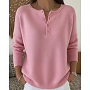 Women's Sweater Pullover Fashion Solid Color Ribbed Crew Neck Buttons Knitted Long Sleeve Regular Tops Knit Going out Weekend Yellow Pink Fall |