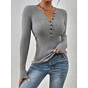 Women's Sweater Casual Soft Pure Color Ribbed Crew Neck Buttons Knitted Long Sleeve Regular Tops Knit Outdoor Daily Weekend Black Wine Fall Winter |