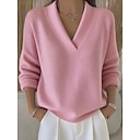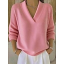 Women's Sweater Casual Soft Pure Color Ribbed V Neck Knitted Long Sleeve Regular Tops Knit Outdoor Daily Weekend Black Pink Fall Winter |