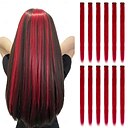 12PCS Colored Hair Extensions Straight Multicolor Clip in Colorful 20 Inch Rainbow Hair Extensions for Kids Women's Gifts Halloween Christmas Party Highlights (12pcs Red) |