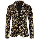 Men's Christmas Ugly Party Blazer Funny Jacket Elk Printing for Xmas Dinner Prom Holiday Plus Size Black 2023 |