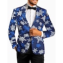 Men's Christmas Ugly Party Blazer Jacket Regular Tailored Fit Snowflake Printing Single Breasted One-button for Dinner Prom Holiday Plus Size Xmas 2023 |