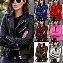 |  | Damen Kunstlederjacke Bikerjacke Bequem Vollreißverschluss Mode Streetstyle Einfach Outdoor Alltagstauglich Regulär Umlegekragen Normale Passform Langarm Oberbekleidung Silber Schwarz Rosa Frühling |