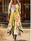 Pentru femei Rochii Midi Rochie de schimb Casual Zilnic Concediu Fit regulat Floral Grafic Manșon Lung Stil Nautic Galben Mov Toamnă Iarnă