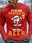 Crăciun Bărbați Mos Craciun Amuzant Bere Oktoberfest Tricou Manșon Lung Tricou Tipărire 3D Stil Nautic Cămașă Modă De Bază #D Stradă Casual Zilnic Albastru piscină Roșu-aprins Trifoi Vară Primăvară