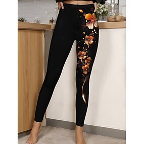 Pentru femei Jambiere Colanți confortabili Vacanță Epocă Casual Lungime totală Talie Înaltă Floral Grafic Imprimare Confort Comfortabil Strech Casual Zilnic Vacanță Negru Primăvară Toamnă Slim Fit