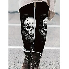 Leggings pentru femei Vacanță Vintage Modă Lungime completă Talie înaltă Imprimare grafică cu skull Moale Respirabil Elastic Outdoor Vacanță Stradă Negru Alb Negru-alb Primăvară Toamnă Iarnă Slim fit