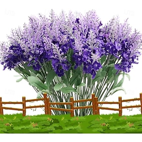 12 pachete de flori artificiale pentru decor, lavandă romantică, flori artificiale pentru exterior, plante artificiale, flori de mătase, arbuști rezistenți la UV, care nu se decolorează, plante verde
